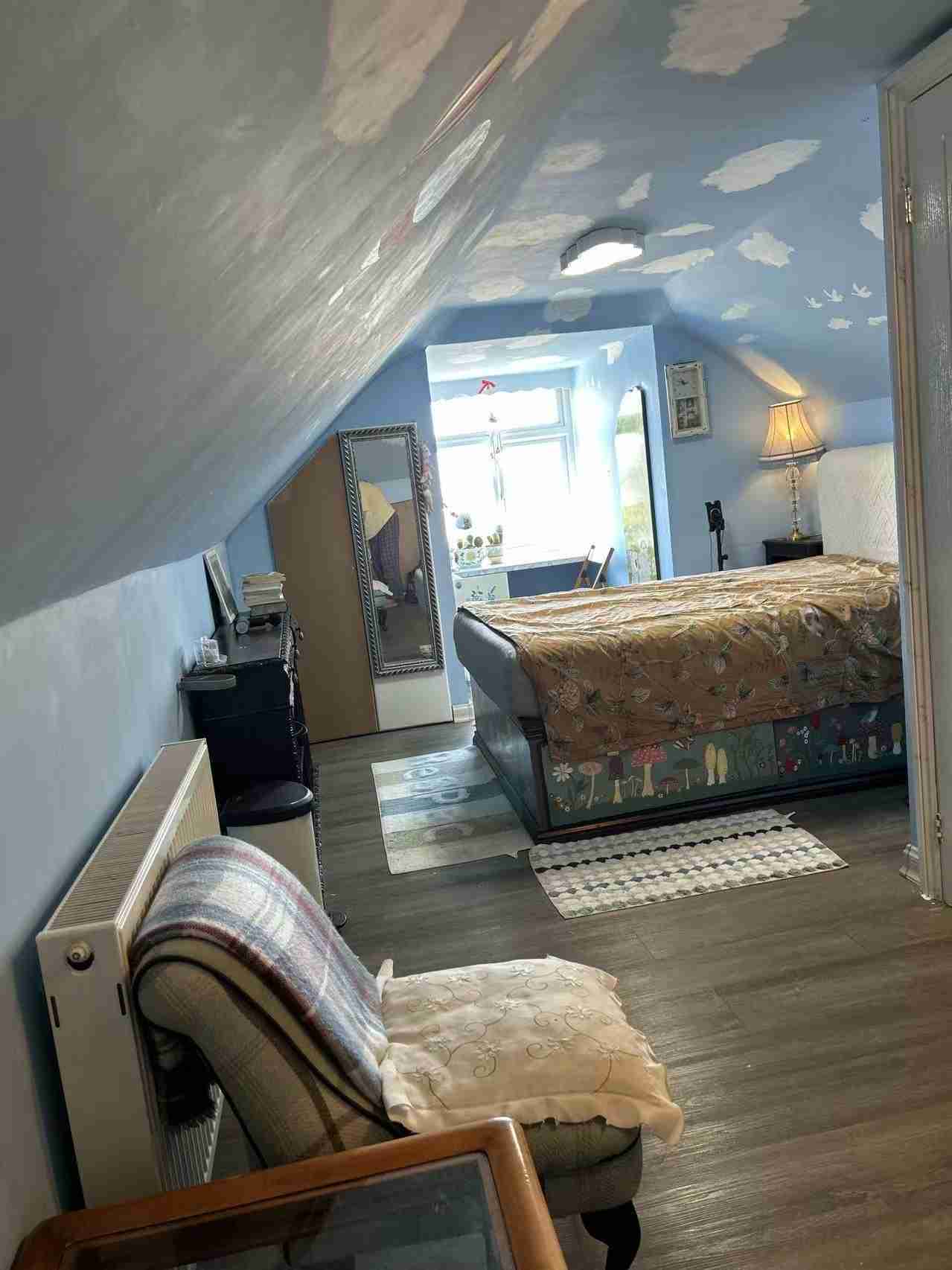 独立式房子楼上单间双人房内有私人浴室,家俱齐全,近公园环境优雅宜人,交通方便,有免费停车位。