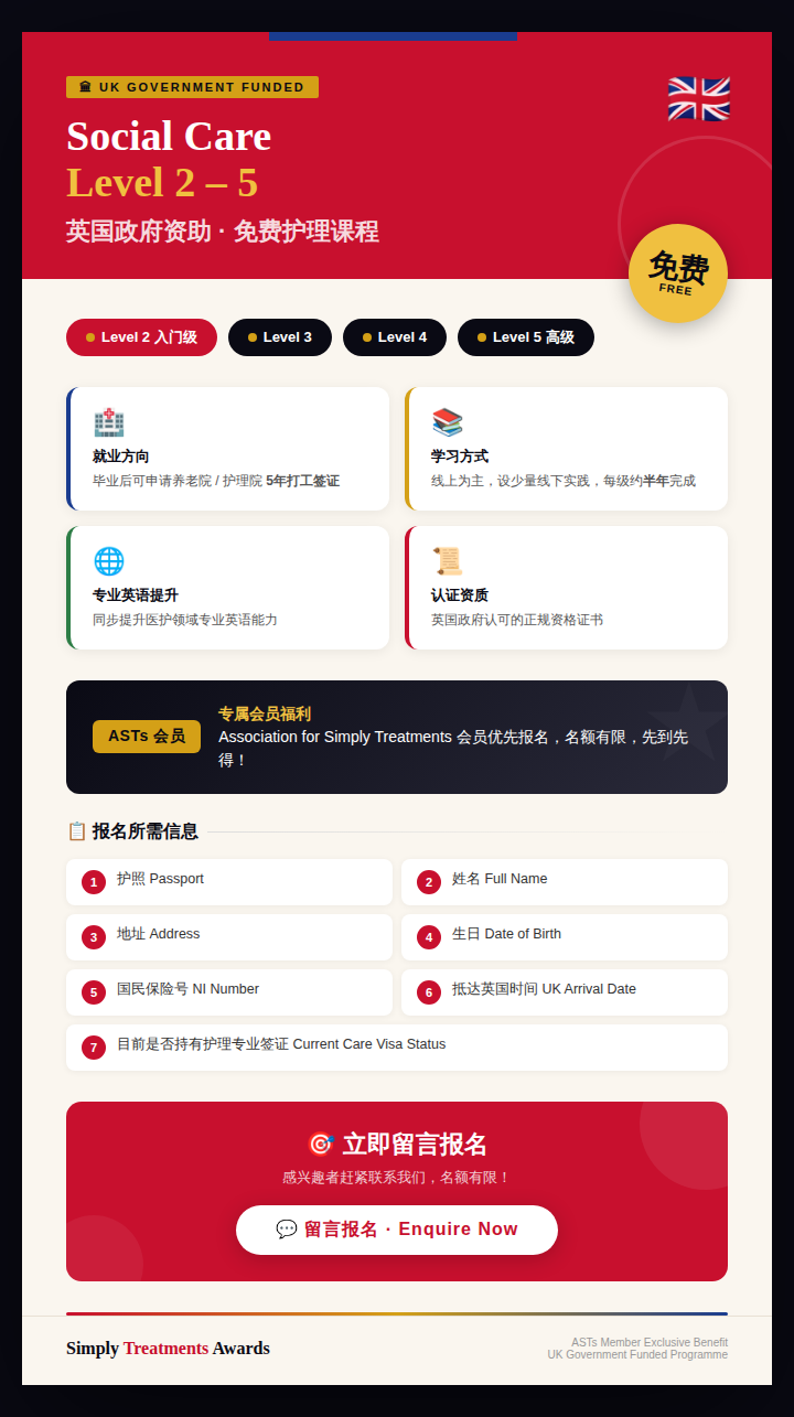 免费Social Care level 2-5课程报名