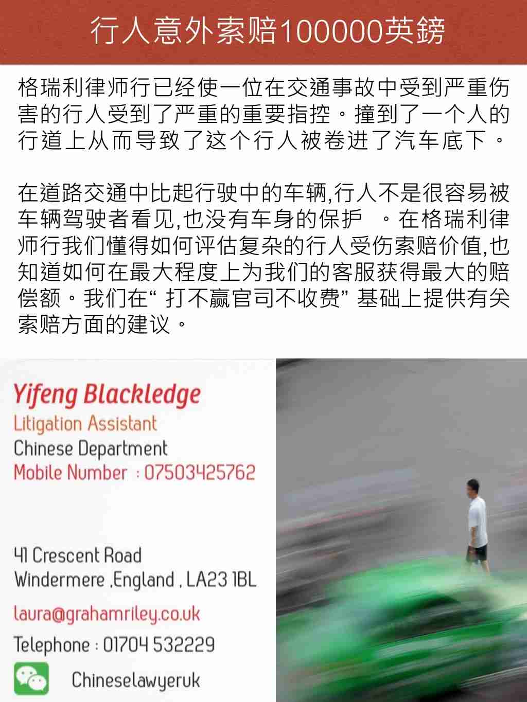 行人意外索赔100000英鎊